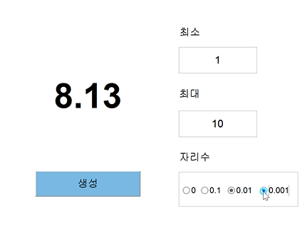 rand 함수는 0부터 1 사이의 난수를 발생시키므로, 입력받은 최대값과 최소값으로 범위를 재설정한다.